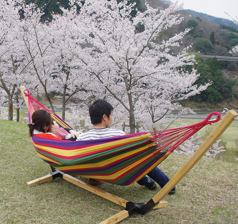 スタンドを使えば手軽にハンモックを楽しめる